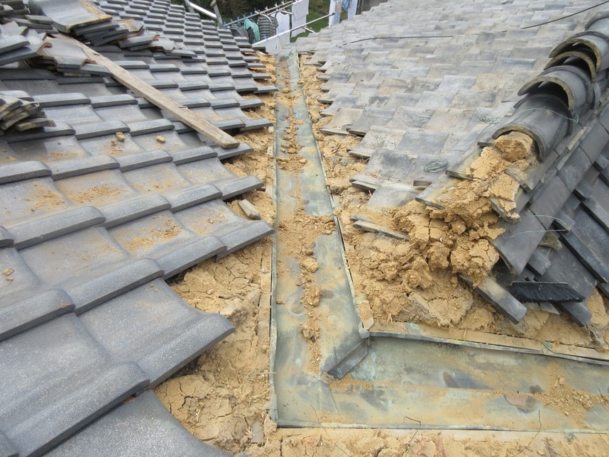 前に屋根工事した際に谷の板金も修理したがテープだけで終わってしまっていたようで、
