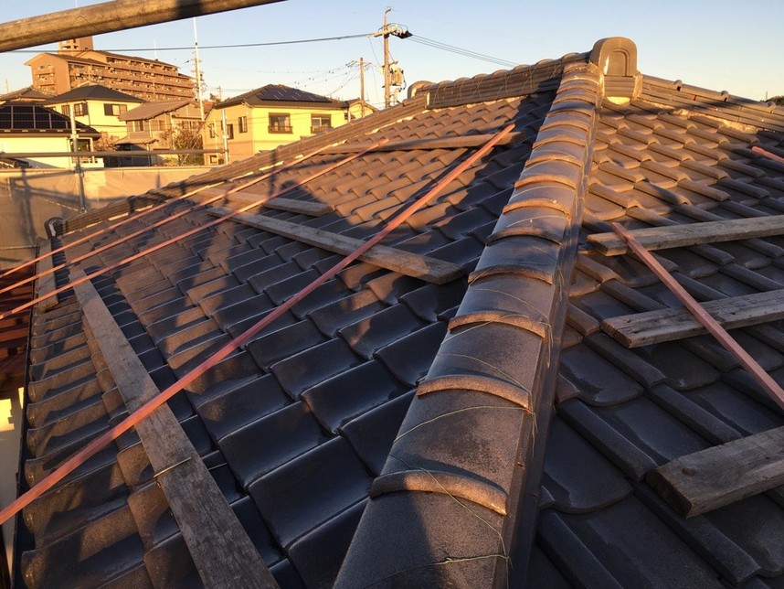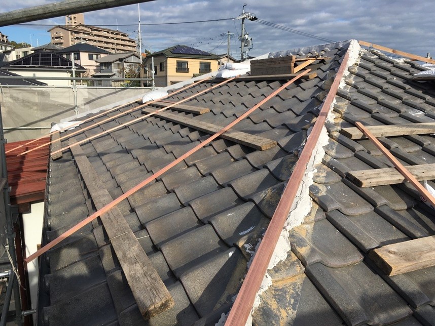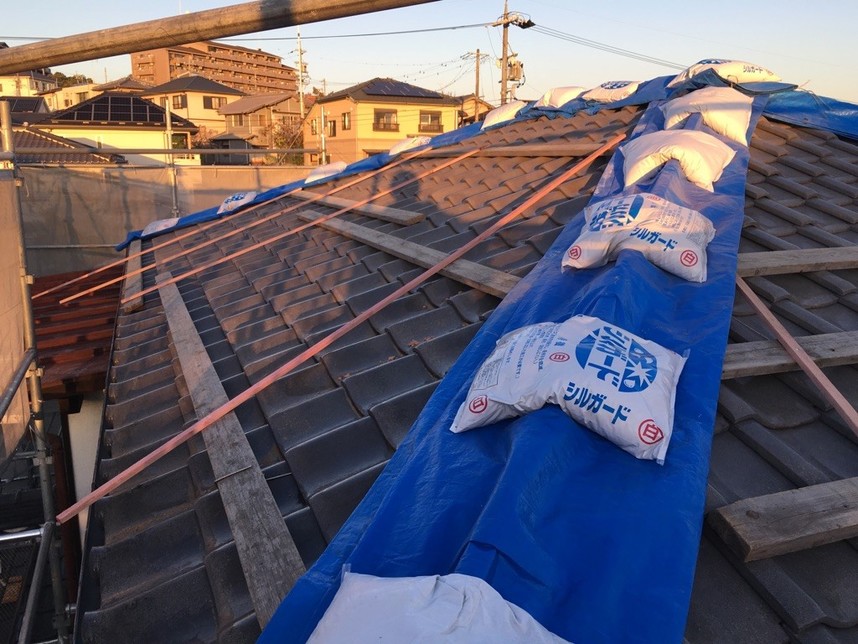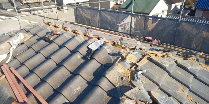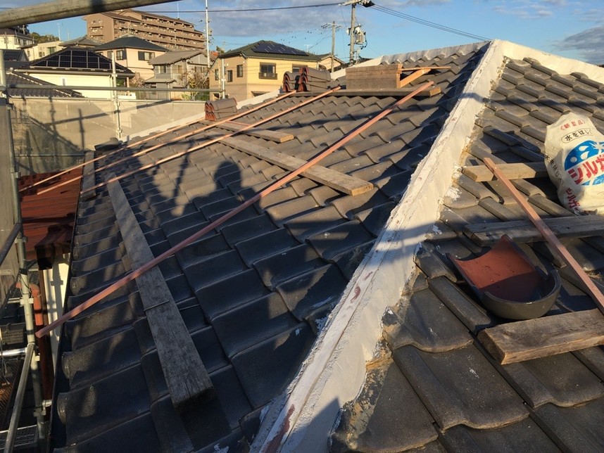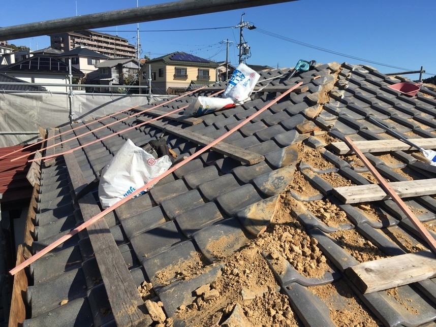 屋根土が劣化することによって、棟の形が微妙に変わってしまい、少雨は屋根を固定している葺き土に吸収されますが、量が多くなると敗れた防水シートの隙間から雨漏りという風になってしまいます。