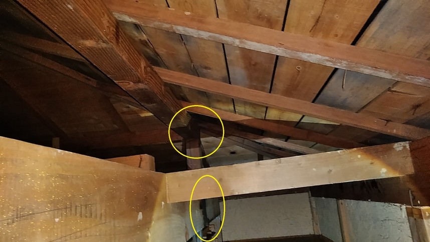 小屋裏確認後、棟からの雨漏りを確認いたしました。
