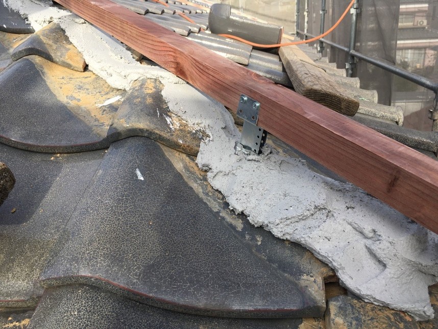 通常の棟よりも大きな7寸冠瓦を使用し棟を納め直します。