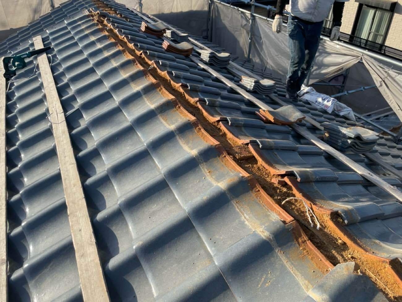 築30年以上の瓦屋根は土だけで固定をしていることがほとんどです。