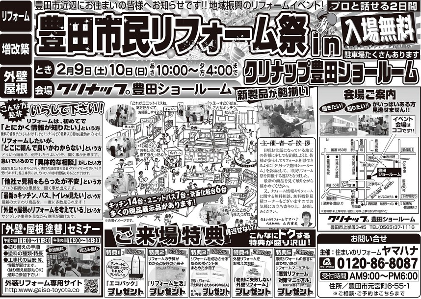 2/9~10開催!豊田市民リフォーム祭inクリナップ豊田SR