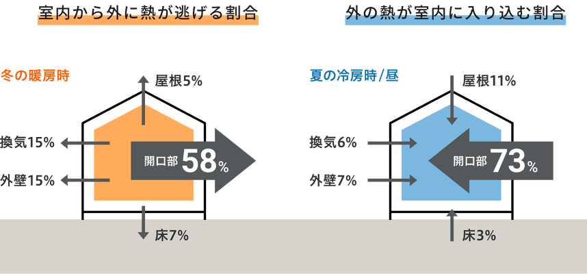 窓は熱の出入りが多く、外気温の影響を受ける大きな要因となっています。