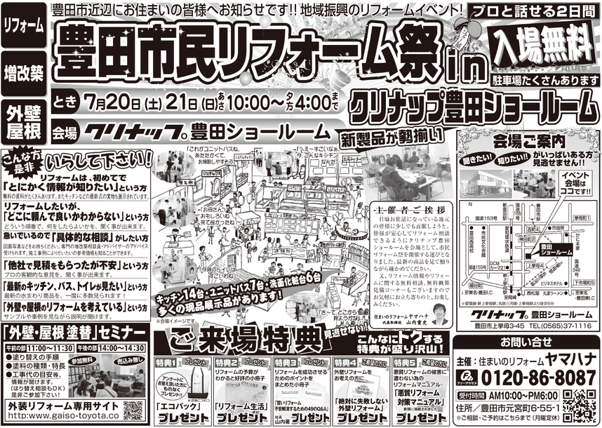 | イベント名 | 豊田市民リフォーム祭inクリナップ豊田SR |