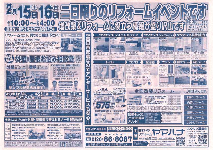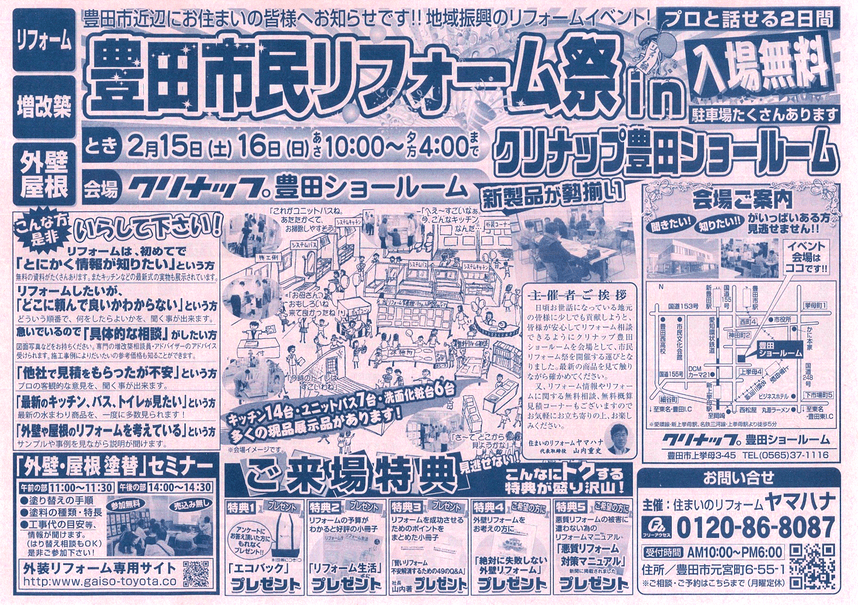 2月15日・16日開催!豊田市民リフォーム祭りinクリナップ豊田SR