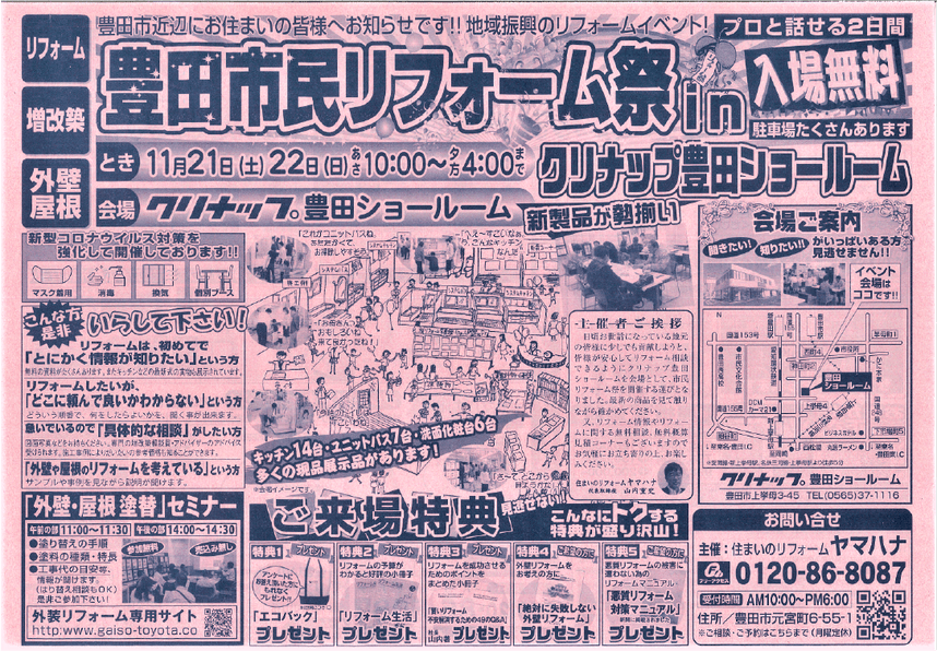 | イベント名 | 豊田市民リフォーム祭inクリナップ豊田SR |