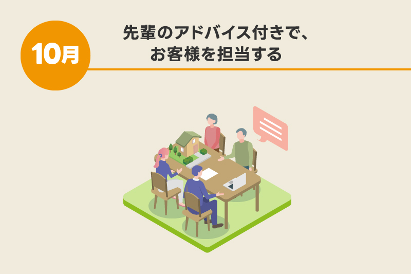10月には主担当としてお客様対応~現調・見積・契約~完工までのスケジュールを作成し行動できるようにします