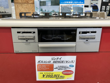 【リンナイ】ガスコンロ 40% OFF!! 人気商品 メーカー希望価格:170,100円(税込)が 販売価格:112,266円(税込) ※参考施工費:22000円(税込) フレームレスのガラストッププレート 両面焼き&グリルタイマーも付いているので魚焼きも楽にできます♪ 展示商品のためメーカー保証はありませんが、ヤマハナ保証を1年お付けいたします。 設置条件 ※都市ガス専用 仕様 【メーカー】 リンナイ 【仕様】 センス(RS71W36T2RVW) 3口コンロ/水無両面焼グリル W750 シルキーシルバー グリルタイマー 左右バーナー温度調節機能 すっきりとしたフレームレストップ ご注文までの流れ ご来店ヤマハナへご来店いただき、商品をお客様にてご確認 仮予約現物商品をご確認の上で、仮予約 本予約弊社にて施工現場を確認し、施工可能であれば本予約 ご注文施工費用とあわせて御見積書にサインをいただき、ご注文完了 ※必ず施工は弊社にて実施させていただきます。 ※賃貸住宅への販売施工は行なっておりません。(個人宅の設置に限ります) よくある質問 Q.1商品購入後、自分で取り付けしてもいいでしょうか? 恐れ入りますが、施工は必ず弊社にて実施させていただきます。 1年間のヤマハナ保証とあわせて、弊社が施工責任を持って対応させていただくためとりなりますので、ご了承ください。 Q.2商品の予約は、電話やメールで受け付けていますか? ご来店いただき、弊社スタッフからのご案内の上で仮予約とさせていただいております。 展示品という性質上、実物をごらんいただき、ご納得の上でご購入いただくためご了承ください。